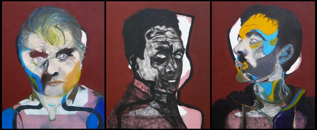 Louis-Ferdinand Céline – huile sur toile – 20×24″ – 2023Ingres et Manet – huile sur toile – 165x115cm – 2022Sur-Joconde – huile, acrylique et collages sur toile – 130x180cm – 2019Les bons garçons – huile et acrylique sur toile – 115x165cm – 2022Victime et bourreau I – huile sur toiles – diptyque – 96x56cm – 2018Victime et bourreau II – huile sur toiles – diptyque – 96x56cm – 2018Thésée – huile sur toile – 81x130cm – 2017La colère – huile sur toiles – triptyque – 2016De la paix à la mort – huile sur toiles imprimées – triptyque – 2012Crucifixions – huile sur toiles – triptyque – 114x46cm – 2015Arthur, Marguerite et Federico – acryliques sur toiles imprimées – 2012Autoportrait violent – huile et acrylique sur toile – 89x146cm – 2017Superstars – huile et acrylique sur toiles – polyptyque – 30x90cm – 2018Jean Genet – huile sur toile – 120x120cm – 2017Marlon, Steve, Diane et les autres – huile sur toile – 120x120cm – 2017Président – huile et acrylique sur toiles – quadriptyque – 96x112cm – 2017Frida Kahlo – huile sur toile – 80x80cm – 2016Surautoportrait bleu – huile sur toile – 80x80cm – 2016Simone Veil – huile sur toile – 80x80cm – 2018Marilyn – huile et acrylique sur toile – 120x120cm – 2018La honte – huile et acrylique sur toile – 120x120cm – 2017Femme – huile sur toile – 120x120cm – 2018L’attentat – huile sur toile – 120x120cm – 2017Astrid – huile sur toile – 80x80cm – 2016Ève et Adam – huile et acrylique sur toiles – diptyque – 200x130cm – 2017Géraldine Laurent – huile sur bois – 42x80cm – 2015Homme debout – huile sur toile – 80x80cm – 2016James Baldwin – huile sur bois – 75x115cm – 2020L’accident – huile et acrylique sur toiles – diptyque – 96x56cm – 2015Chien – acrylique sur toile – 110x110cm – 2015Homme – acrylique sur toile – 62x85cm – 2015Gabriel Garcia Marquez – acrylique sur toile – 105x70cm – 2015Raphael – huile sur toile – 38x46cm – 2015Marguerite Duras – huile sur toile – 70x70cm – 2013Autoportrait au hijab – huile sur toile – 38x46cm – 2015Hippolyte – huile sur toile – 81x130cm – 2016Surportrait – huile sur toile – 38x46cm – 2016Jean-Marie – huile sur toile – 40x40cm – 2019Angela Davis – huile sur toile – 80x80cm – 2022Phèdre – huile sur toile – 80x80cm – 2017Yohan Vallée, danseur – huile sur toile – 160x110cm – 2017Les peintres – huile sur toiles – triptyque – 114x56cm – 2015Trois migrants – huile sur toile – 80x80cm – 2016Yohan à Bénarès – huile et acrylique sur toiles – diptyque – 19×27″ – 2013Autoportrait ultime – huile et acrylique sur toile – 130x180cm – 2016